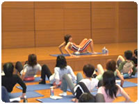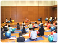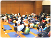 ボールでピラティス 身体を内観していくには、かなりの集中力が必要です。その集中する力と新感覚を敏感にキャッチする能力を充分に発揮された大分ルネのみなさんに脱帽!