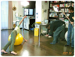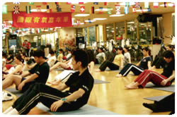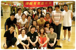 なぜかいつも両方を希望されます。ほとんど英語はDo like this と言って、あとはボディーランゲージのオーバーアクション、でも、感じてもらえればこっちのペース。皆さん真剣です。このあとのスタッフ忘年会にも参加!台湾式どんちゃん騒ぎはおもしろかった! (写真提供:Super shape Club 葉家丞さま) 【2】おどろきと感激のニュースキンクラブ 3重ものセキュリティーシステムで、やっと入れたニュースキンクラブ。