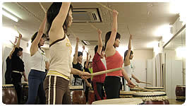 「TAIKOビクスは東京でしか受けられないの?」という、関西の方の悲痛な叫び(?)を救済すべく、地元京都でもTAIKOビクスのレッスンが開催されることになりました。本日は、第一回目のレッスン。予定の定員を3名上回る18名の熱気がスタジオに籠もります。