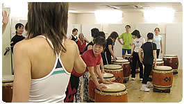 今回の参加者は、普段「中尾レッスン」でコアトレーニングを受けている方ばかりでしたので、皆さんとても姿勢が綺麗で、無駄な力が抜け、音がしっかり出ていました。途中から見学に来られた太鼓センターの先生方が「ビギナーの音とは思えない!」と驚くほどの出来でした。