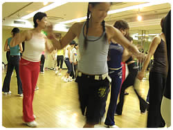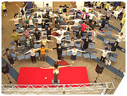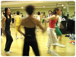 今回のワークショップは、コア・エアロビクスとJSA(ジョイントスケーティングアプローチ)の豪華二本立て。忙しいレッスンスケジュールをやり繰りし、「今が旬」な35名のインストラクター達が、オーク21のBスタジオに集結します。毎度おなじみ、京都府外からの「新幹線組」は、大荷物を抱えての参上です。