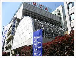 【左上】フィットネスセッションの会場は、東京・江東区のYMCAです。【右上】入り口。ドアに張られたVAAMとQちゃん(高橋尚子さん)のポスターが、いかにも「フィットネスイベント」な感じです。