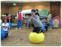 【右上】ほんの少しの練習でかなりの方がボールに座れました。