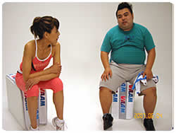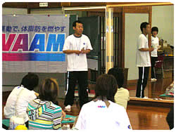 イスに座ったままでのエアロビクス運動では余裕の表情で楽しんだ長友さん、