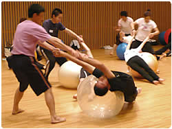 【右上】Gボールインストラクター認定講習会の講師でもある沖田祐蔵さん!