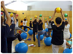 グループ・パーソナル・スポーツの場面におけるGボールの活用法を指導します。