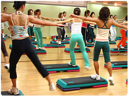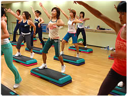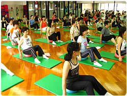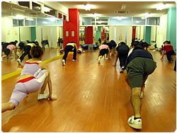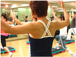 【左上】 今鍛えたばかりの「体感」を意識しながらのエアロビクス・レッスンが始まります