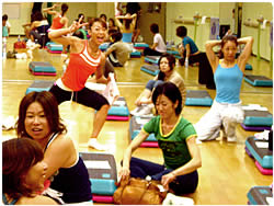 毎週3本のレギュラーレッスンが行われているオーク21は、中尾和子のホームグラウンド。このスペシャルレッスンにも、コア・エアロビクス、ステップ、中尾スクールのレッスンでお馴染みの生徒さんたちが数多く参加していらっしゃいました。