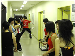 【右上】 身体の深い所から汗がしたたります(鏡に写るレッスン風景です)