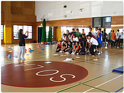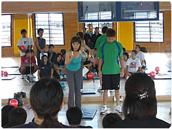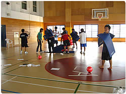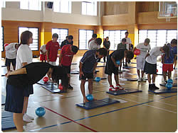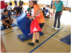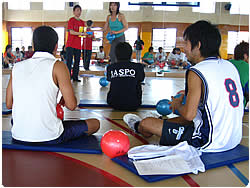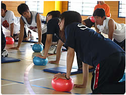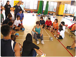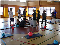 【右上】ボールの準備を手伝う有志たち。ギムニクボールに触るのは初めての様子です