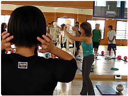 【右上】DVD付書籍「中尾和子のパワー・コア」を手に、講師紹介を行う与那城先生