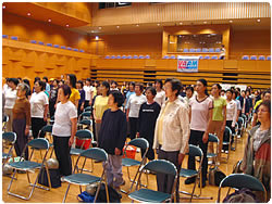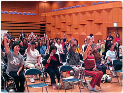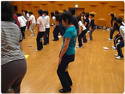 【右上】 会場の最後列にて:本日も、運営スタッフが一緒にエクササイズを始めました。