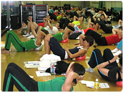 【右上】全くさぼっている人はいません!これ腹筋の練習しているところです