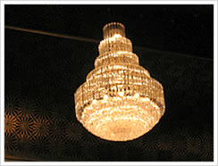 【右上】この一個のシャンデリアには400個の電球があるので磨くのはそうとう手間だとか