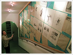 【左上】この地下室に芸術家や政治家などが集った、樽の蓋に絵が描いてある