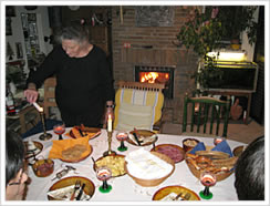 【下】暖炉のある暖かいリビングで夕食が始まります