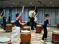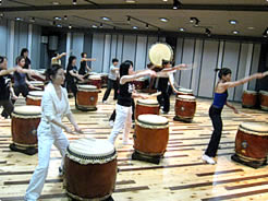 【右上】太鼓を打ちながら大きく動くので、相当の運動量になります