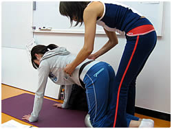 【左写真】研修終了の間際。フィットネス雑誌の特集記事のため、フリーライターの伊藤康子さんが取材に来られました。