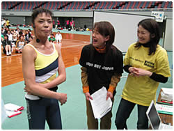 【右上】和太鼓にはないフィットネスの部分の話に興味をもたれたようです