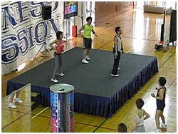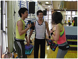 詳細不明のまま、YMCAのアリーナへ入れば---- 黒いシャツのインストラクターが3人。「リードは超ごうか3本だて」 これは凄いことになりそうです。