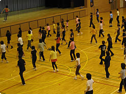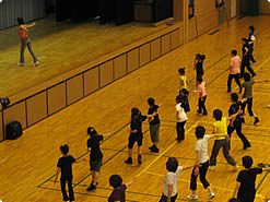 【右上】広い体育館なのでのびのびと踊れます