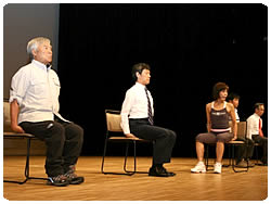 【右上】私は、よい姿勢がどれだけ大切かを説明しています