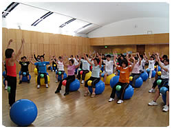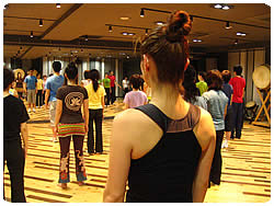 【左】厳しいコア・エクササイズ後のご褒美は、ダンサブルなエアロビクス。