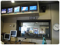 【左上】テレビ番組収録スタジオに必ずある音声や映像などコントロールする部屋