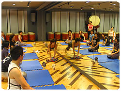 【右上】クラス終了後の風景。太鼓会員さんからの質問に答えているところ。