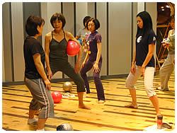 【左上】いよいよ開始。一人一人に中尾和子オリジナルボールが配られます。