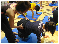 はじめての人と、ベテランの人が、同じ動きを行うエクササイズ。