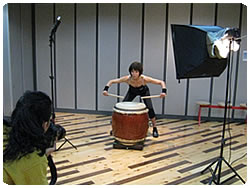 【左上】どんな動きでどのように太鼓を打つのか、まず下見