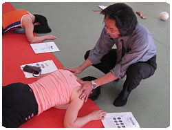 【左上】仙骨の滑らかな動きを感覚でつかむための手技