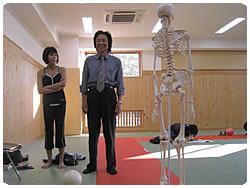 【左上】今度は田口先生の姿勢をチェック「何でまっすぐ立てへんの?」