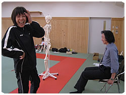 【右上】筆記試験中の質問にスケルトン君で説明する田口先生(大胆やわー!)