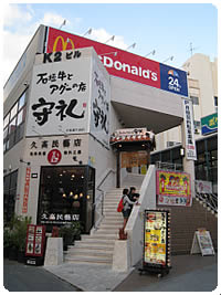 【左上】1階が民芸店、2階は焼肉?その隣がプリクラで、おまけに大きなマクドナルドの看板