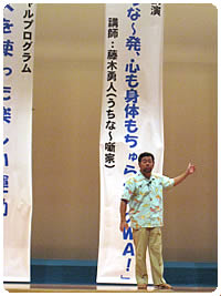 【右】うちな〜噺家 藤木勇人さんの文化講演