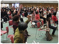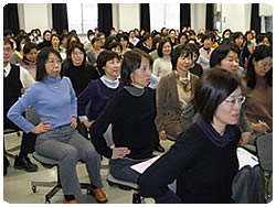【左上】講演の合間の軽い運動で気持ちよくリフレッシュ!
