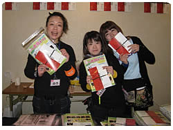【左上】受付:美女3人!!!左からスタッフ:野津恭子、上坂佑梨、鹿糠優子
