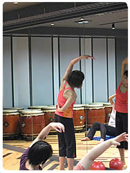 藝大の体育館は広々としているので、のびのびとした気分でできます。