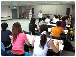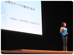 講義のタイトルは「いつでもどこでもできるフィットネス 美しい姿勢と呼吸」