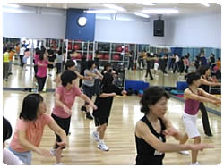 どこに行ってもエアロビクスダンスという共通語でスタジオ中に一体感が生まれます。