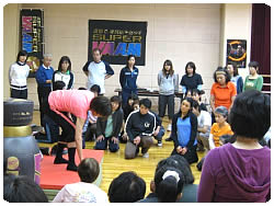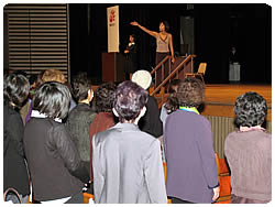 【左】立ったり座ったり参加者の方も大変?