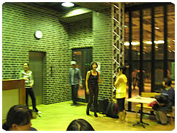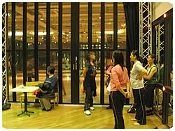 レッスン前の風景です。地下二階まで吹き抜けのロビーで開始を待つ参加者の方々。
