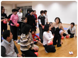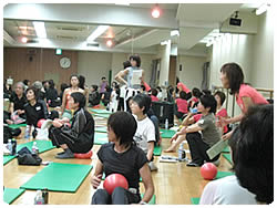 身体で体験しながら、ボールエクササイズの講義終了後は、