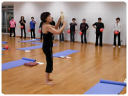 前半のコア・トレーニングで練習した動きを取り入れたダンスが始まりました。