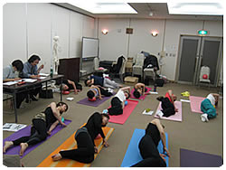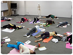 参加の方はいろいろなポーズをしながら、心と体の関係を身体で理解しました