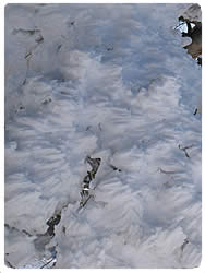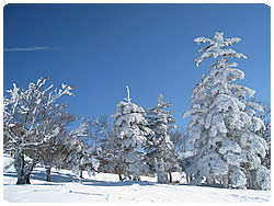 樹氷です。エビのしっぽみたいに風で吹かれながら少しずつ凍る、こんなきれいな樹氷を見たのは初めてです。