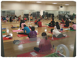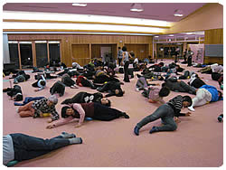 広い会場ですが、床が冷たいので、温まるために腹筋を開始早々に行いました
