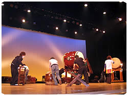 長胴太鼓が片付けられ、大太鼓登場、そして位置決め